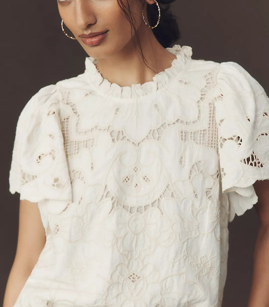 ANTHROPOLOGIE The Lainie High-Neck Lace Cutwork Blouse