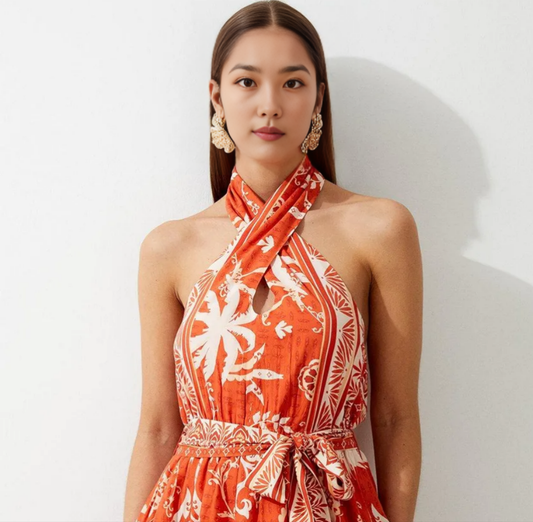 FARM RIO Wild Brazil Tie-shoulder Cotton Mini Dress