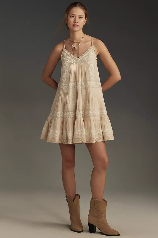 ANTHROPOLOGIE Embroidered Pintuck Mini Dress