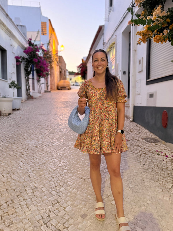Floral printed mini dress w/ puff sleeves
