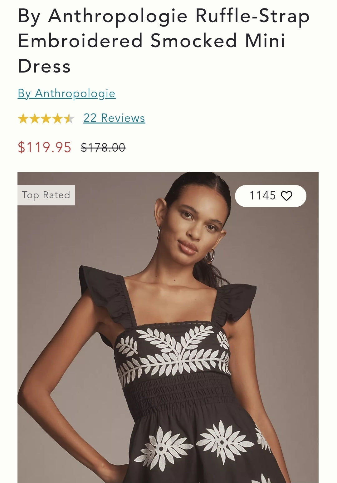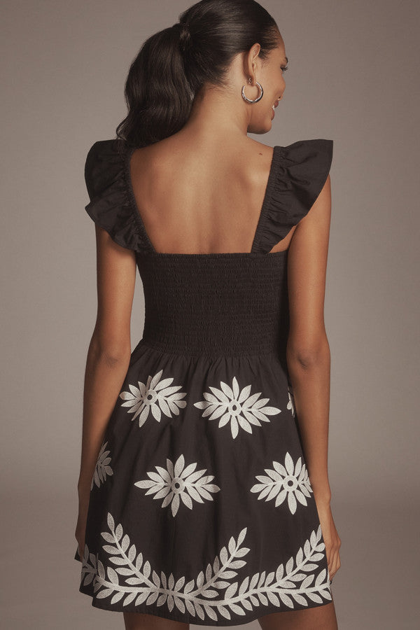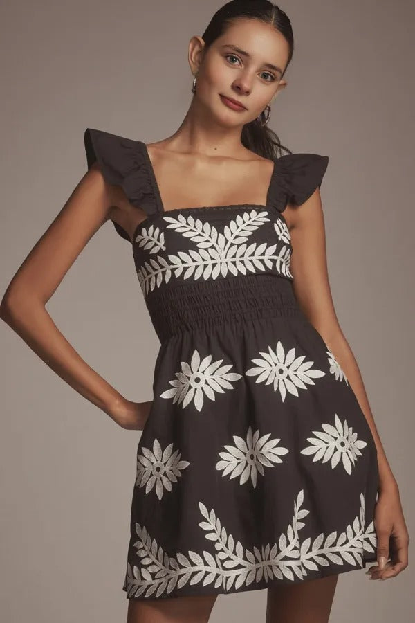 ANTHR⚪️POLOGIE Ruffle-Strap Embroidered Smocked Mini Dress