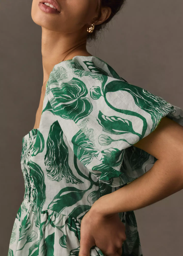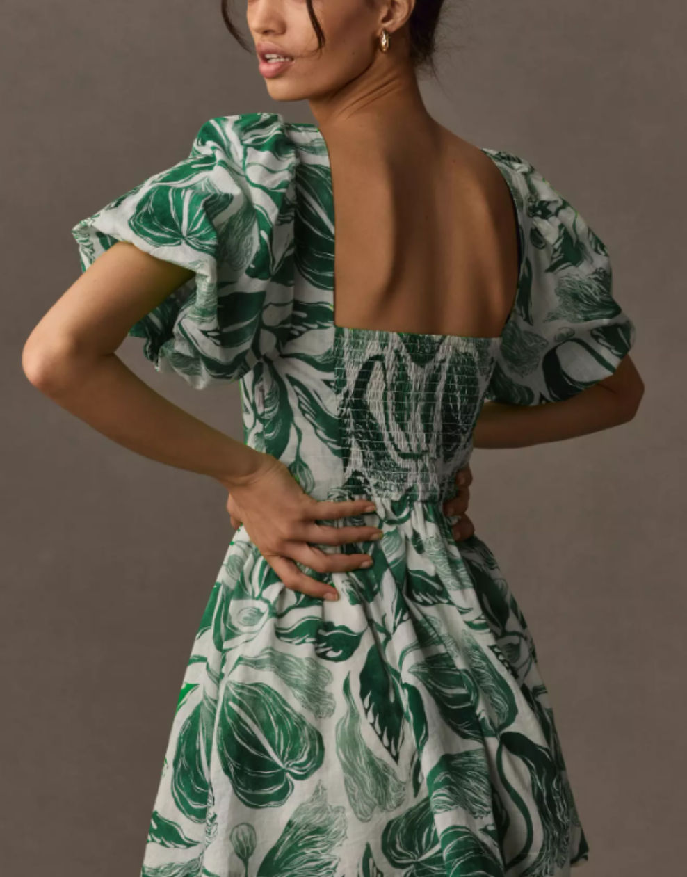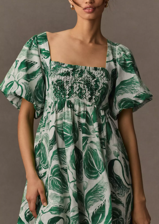 ANTHR⚪️POLOGIE Yukiko Noritake Square-Neck Smocked Babydoll Dress
