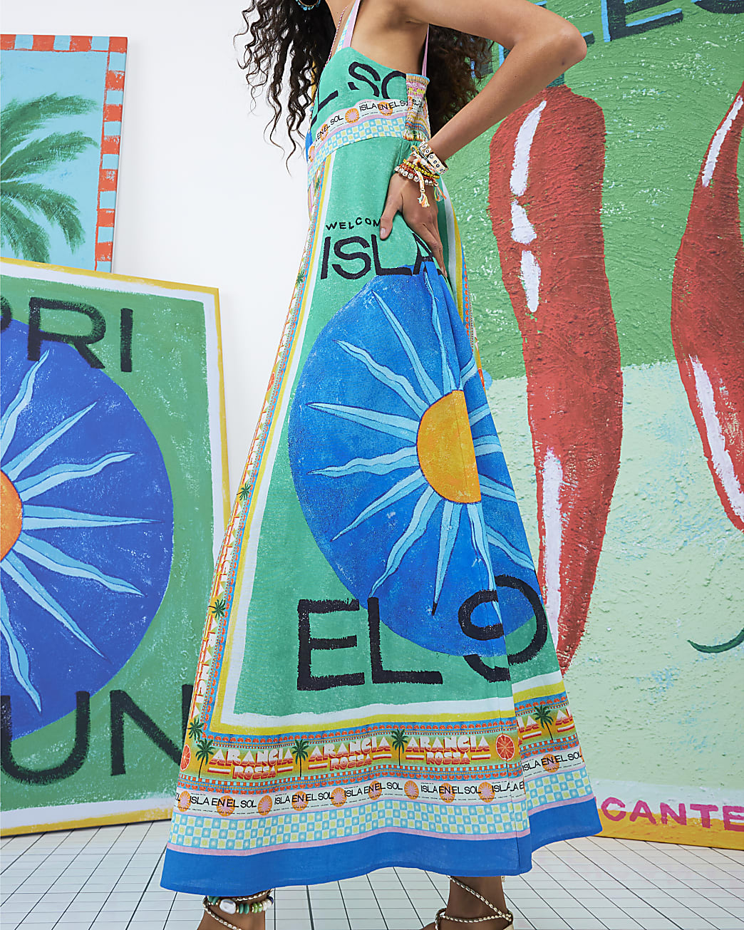 RIVER ISLAND Blue Atlas Printed Linen Blend Maxi dress (Surplus)