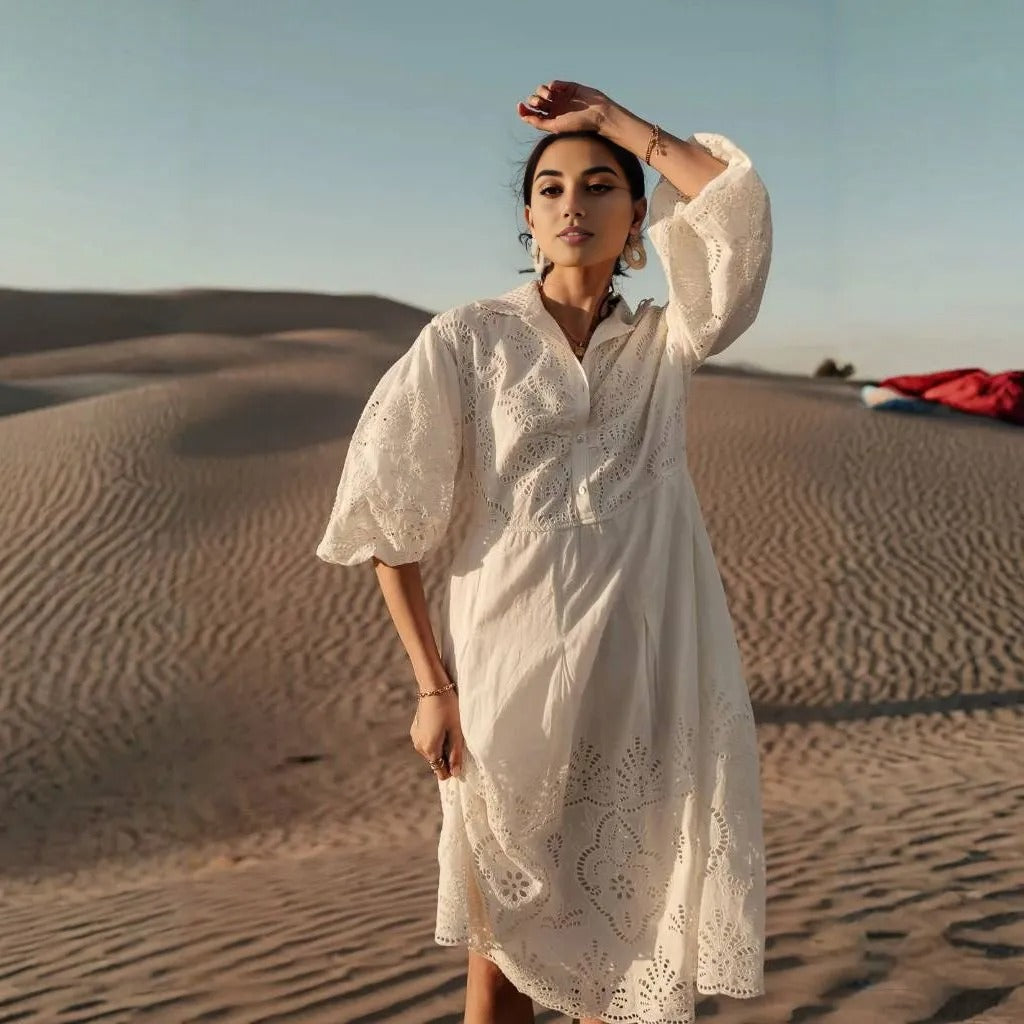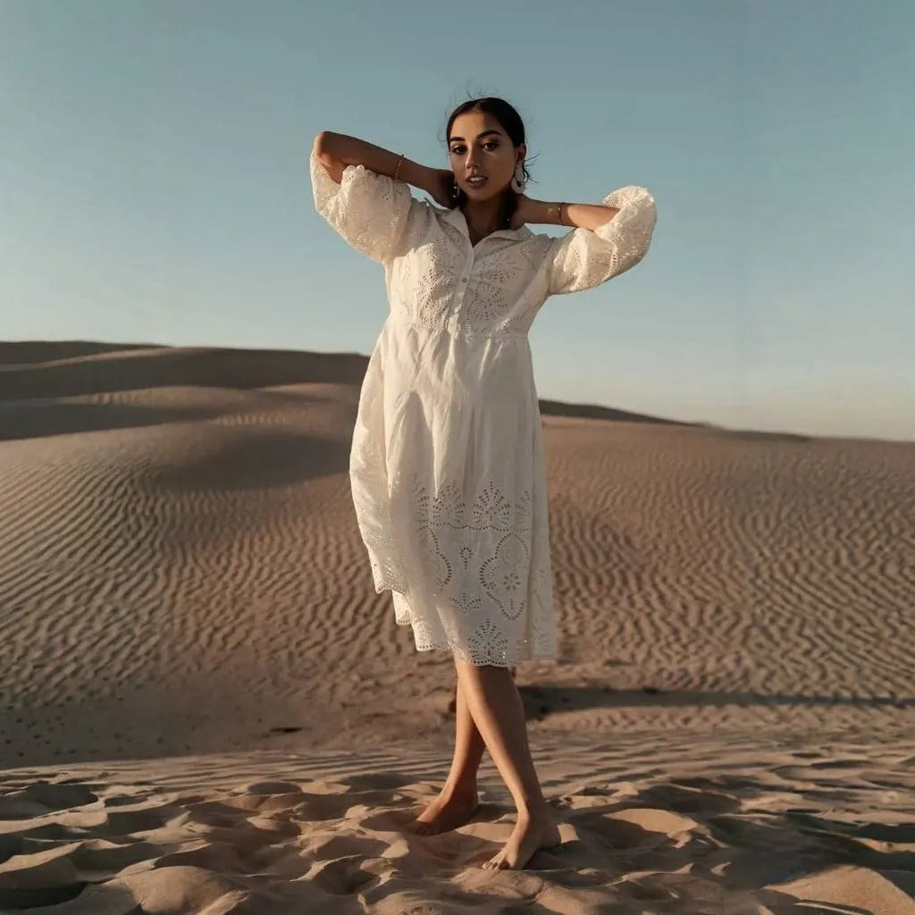 B⚪️hme Eleanor Eyelet Lace Midi Dress in Cream