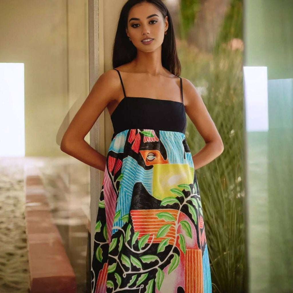 ANTHR⚪️POLOGIE Celandine x Carla Petelski Printed Cotton Midi Dress